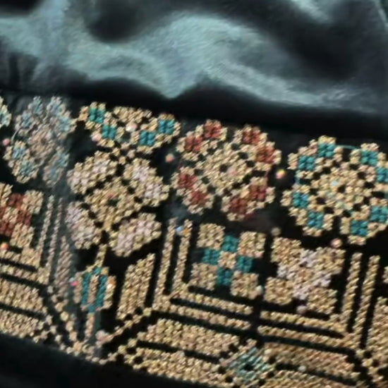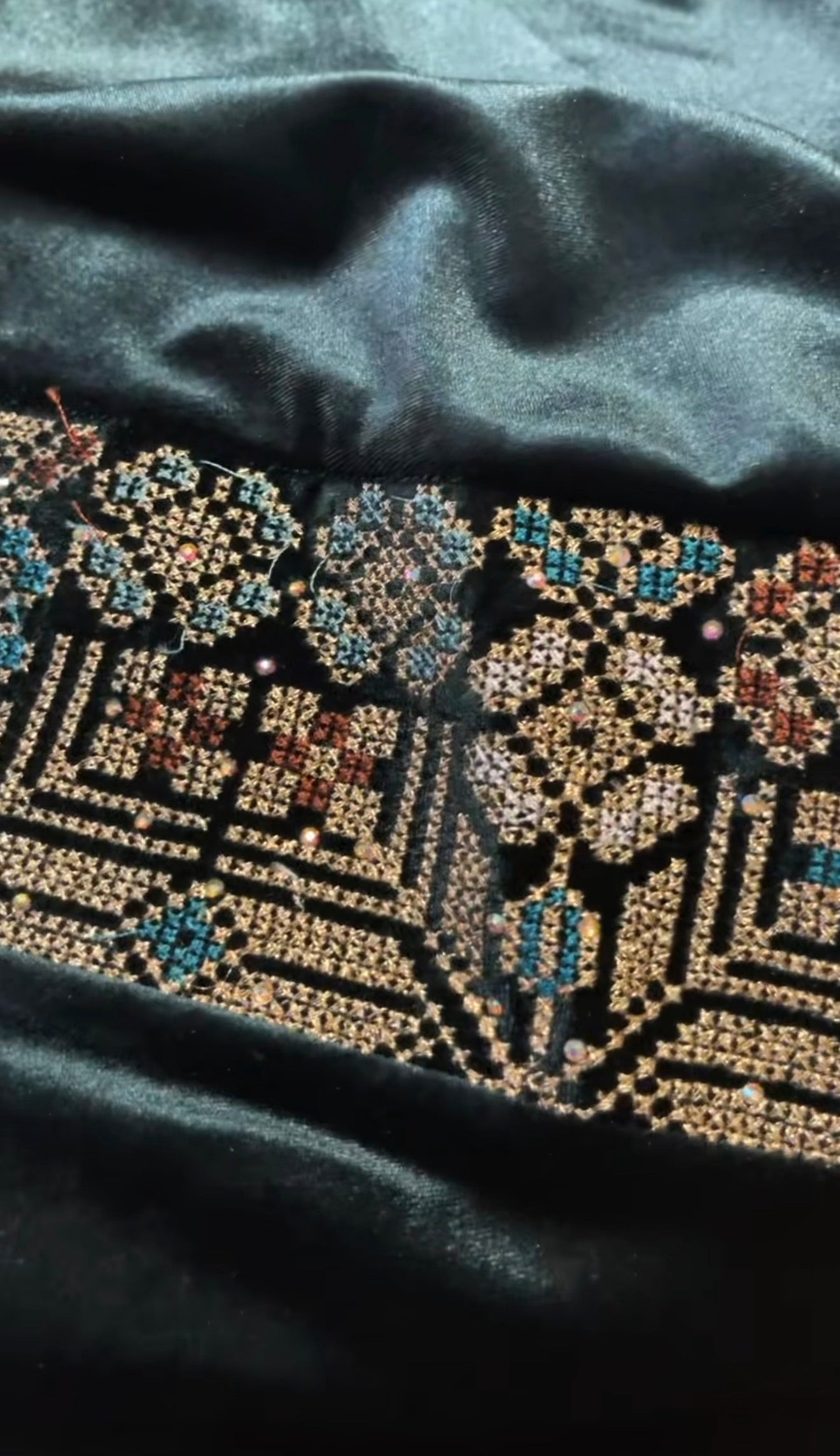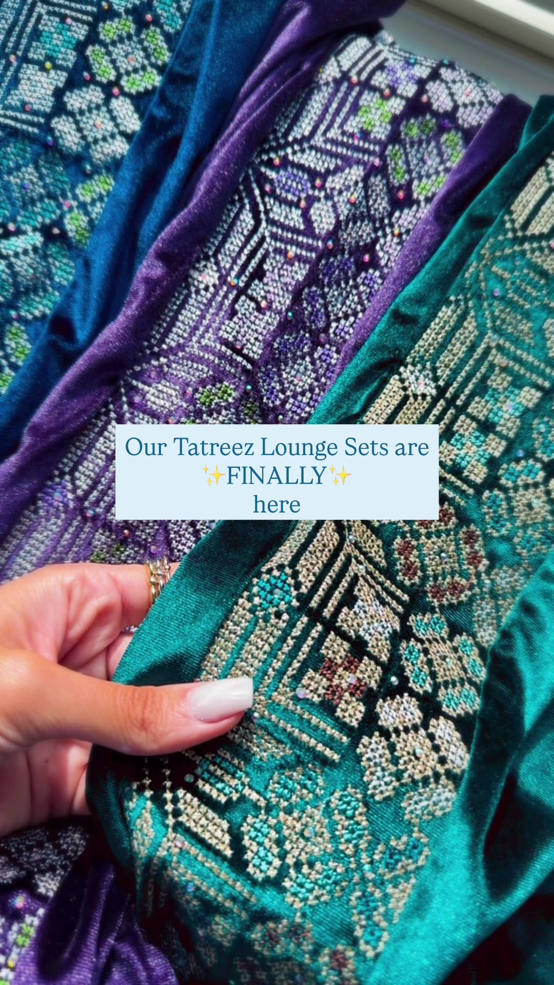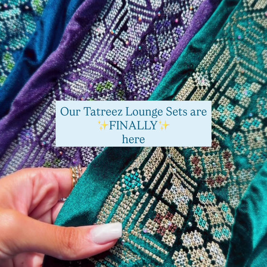 This velvet loungewear set combines comfort with cultural elegance, featuring intricate tatreez stitching that adds a unique touch. Available in three NEW rich colors! PURPLE, TEAL, & NAVY! this set is designed for ultimate relaxation. The oversized fit provides a laid-back silhouette, while the STRETCH waistband ensures a flexible and comfortable wear. Convenient pockets add functionality, making it perfect for both lounging at home and casual outings. Whether you're winding down or running errands, this cozy yet stylish loungewear set will keep you feeling at ease while showcasing your inner roots✨